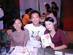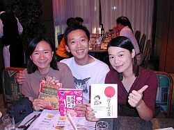 花絮 今次的聚會,共有14人出席,共集合了日本自遊易網站、大雄的日本世界和杏子的忠實讀者一起,雖說人數不算太多,但剛好能圍坐一起,席期大家都傾談甚歡。聚會的地點改了在杏子和貞子下榻的灣仔利景酒店的自助餐,而自助餐的時間由六時半起,大家經過一輪衝刺吃東西後,就立即找著杏子院長來替已買的杏子書籍簽名和合照。之後相互調換位置傾談,相信出席的網友和讀者們都很高興吧!以下就看看當晚的相片吧! |
