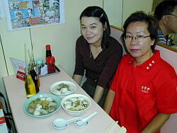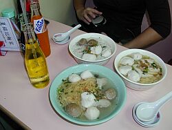 | 圖左起:模型比賽的全場總冠軍(乾隆皇的模型)、在何文田的麥銘記吃麵、左起是玉泉的忌廉汽水(cream soda)好像台灣沒有呢,最前面是紫菜四寶麵、後面的是雙丸河粉和最右的是魚蛋粗麵 | |