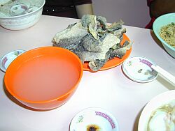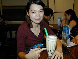 | 圖左起:炸魚皮(有點油膩,但好吃啊!)、在旺角喝台式珍珠奶茶(杏子說味道和台灣的差不多)、和網友/讀者的聚會 | |