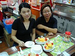 | 圖左起:剛到港的杏子拿著當日出版的東x雜誌而證明到港了(似在賣廣告嗎?哈!)、在尖沙咀海運中心的Dan Ryan餐廳與日本來的好友原智子、在旺角的許留山吃甜品 | |