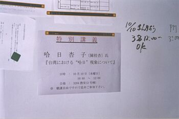 平成13年10月10日,台灣的國慶日,杏子在麗澤大學演講的實況報導呢! |